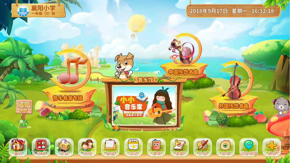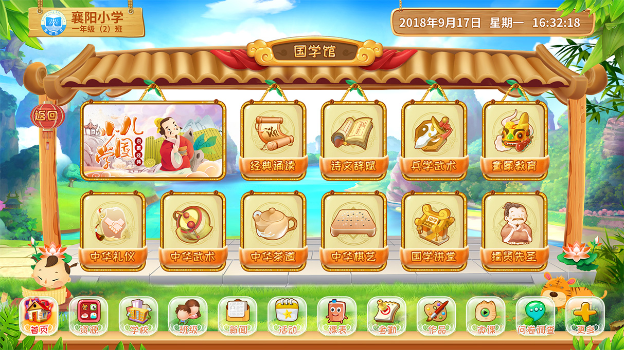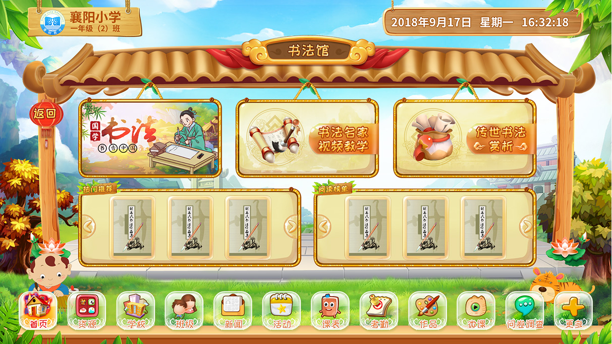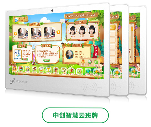 “中创电子班牌”是一款智慧校园多媒体交互终端,它不仅包括智能排课、考勤签到、班级和校级文化展示及信息发布、物联控制、教务管理、学生综合素质评价、家校互联、作品展示、微课、值日、问卷调查等应用,还包括七大精品教育资源:国学馆、云阅读、动漫馆、书法馆、美术馆、音乐馆和戏曲馆,国内创新设计。