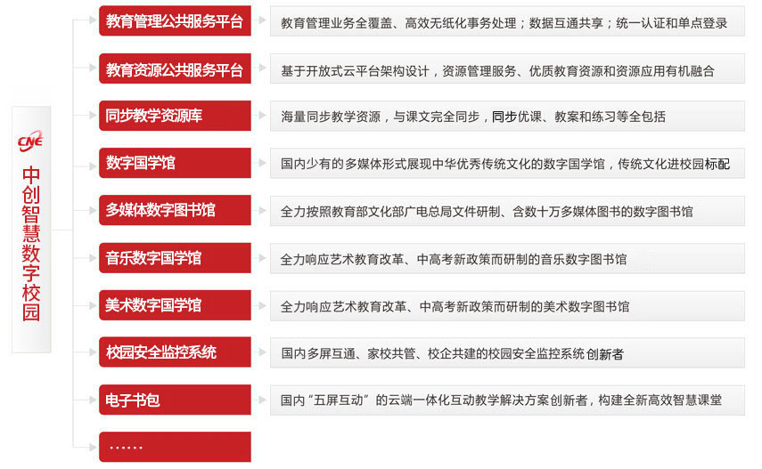 为响应党中央新时期关于教育信息化的战略部署,按照教育部《教育信息化“十三五”规划》的要求,针对教育改革的新需求,中创文教利用云计算、大数据、物联网、移动计算等新技术,研制出了“中创智慧数字校园”。 本系统对“智慧校园”的建设和应用模式以及教育改革提出了全新的解决方案:把新技术与教学、科研、管理、技术服务、生活服务等进行深度融合,协助学校形成基于信息技术的新型教育教学模式与教育服务供给方式,建成“人人皆学、处处能学、时时可学”的教育信息化体系,使优质教育资源和信息技术创新应用惠及每一个师生、家长以及教育管理工作者,使教学更加个性化、管理更加精细化、决策更加科学化,实现教育质量全面提升、在更高层次上促进教育公平、加快推进教育现代化。 本系统包括校园门户系统、管理应用中心、资源中心、教育社区(空间)、多媒体数字图书馆、数字国学馆、数字美术馆和数字音乐馆等模块。 教育管理业务全覆盖,包含统一身份认证及授权管理、人事管理、学籍管理、智能排课、开课管理、在线备课、协同教研、互动教学、在线作业、学生自主学习、学生综合素质管理、校园数字办公、教学空间与交流等教育应用及服务。 本系统自带10T智慧同步教学资源,资源与课文完全同步,同步课程、教案和练习等全包括。 |